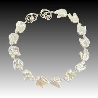 Freshwater Pearl with hand fabricated sterling silver clasp. The clasp is created from square wire and will reflect the light in four directions.