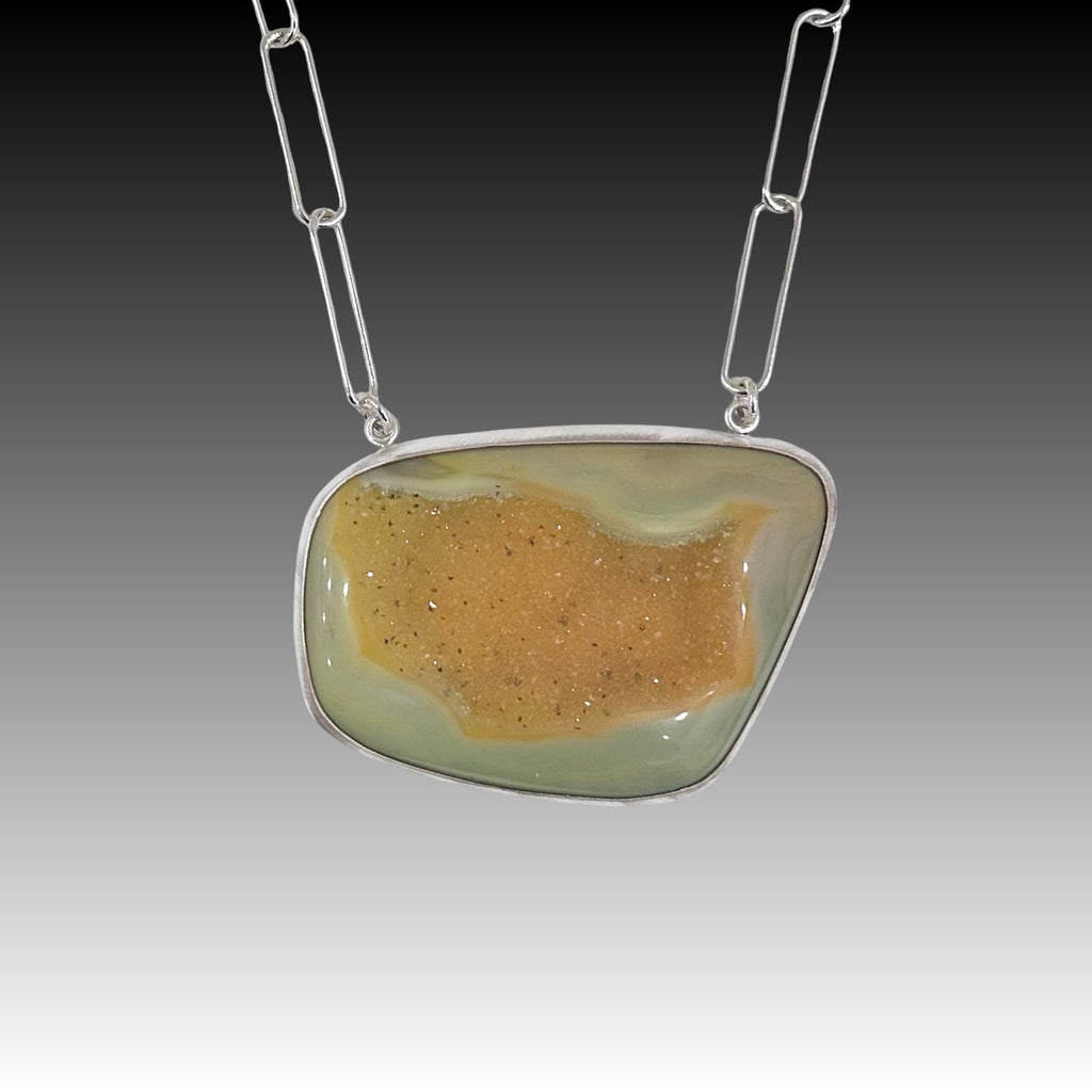 Yellow-green Druzy Agate pendant set in sterling silver.